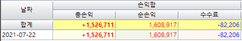 7.22일 총수익입니다.