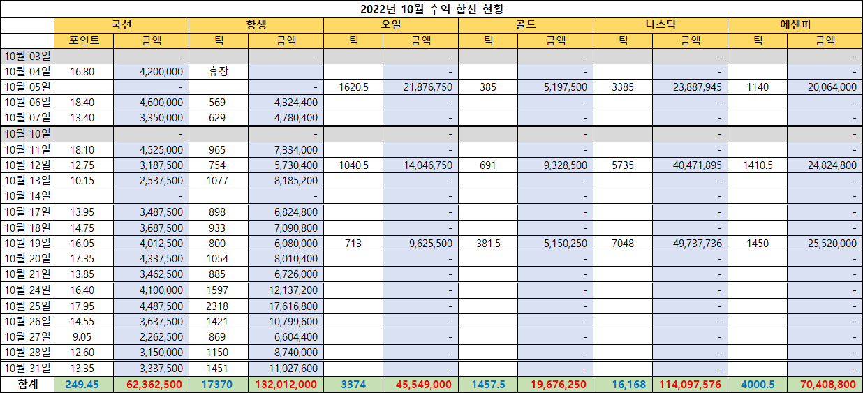 ▶Dr.수지◀ ◈ 2022년 10월 월수익 합산 현황 ◈