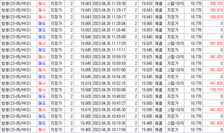 4/26 항셍 월물초 컷한번없이 퍼팩트요^^ 250만원 수익 감사합니다^^