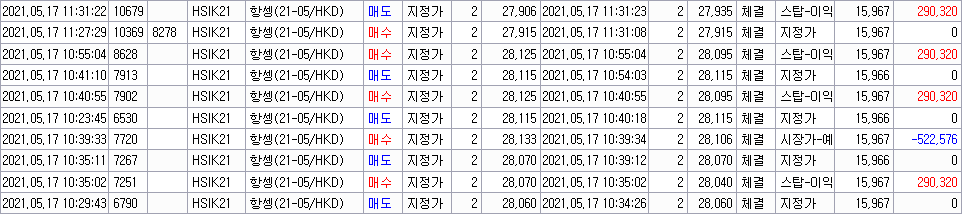 5/17 항셍수익 47만원 감사합니다^^