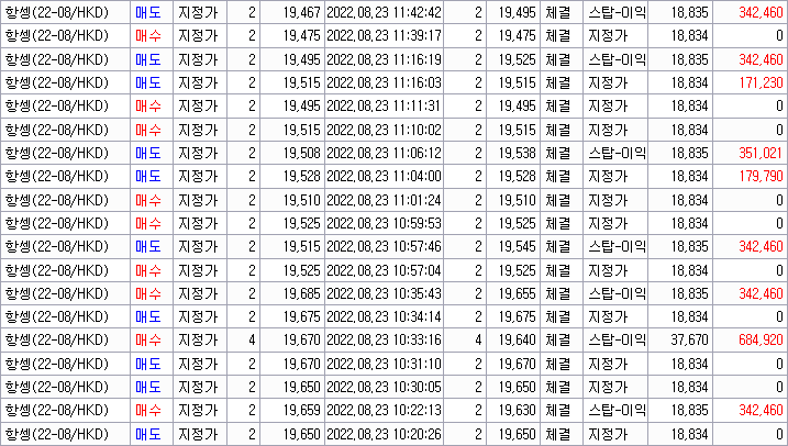 8/23 항셍 수익 272만원 컷없이 모든자리 수익이었습니다 ^^