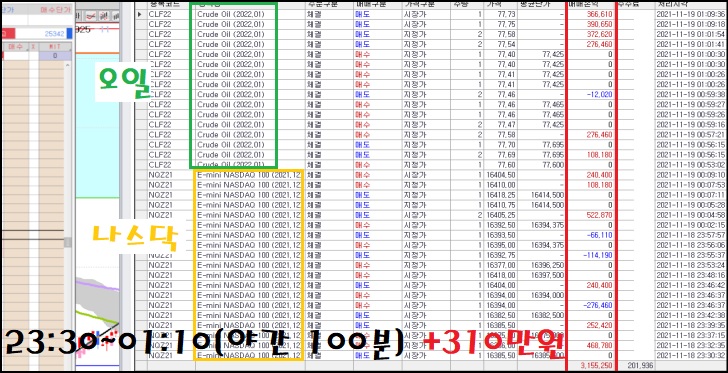 ▼ 나스닥,오일매매 + 3,155,250원 거래내역 ▼